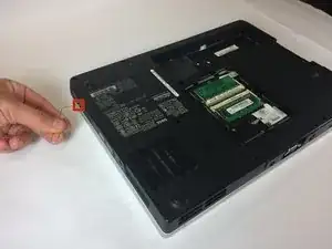 Одновременно поднимите батарею от ноутбука.