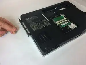 Используя руку, вытяните дисковый привод из ноутбука.