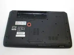Переверните ноутбук так, чтобы его задняя панель оказалась сверху.