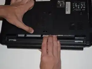 Удерживая кнопку разблокировки, вытащите аккумулятор