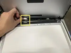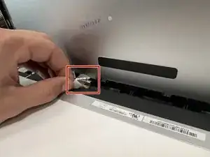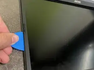 Вставьте открывающую лопатку между серебристой крышкой и черной пластиковой рамкой вокруг экрана.