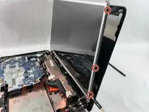 С помощью крестовой отвертки Phillips №0 удалите три винта в креплении вдоль правого края экрана.
