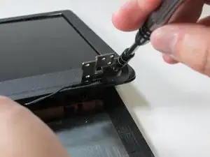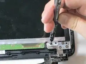 Отвинтите винты Phillips #00, удерживающие шарниры с каждой стороны экрана.