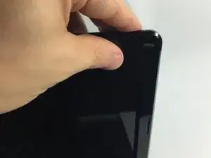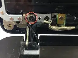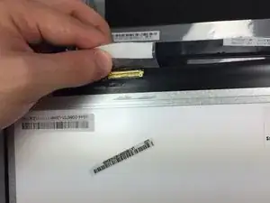 В нижнем левом углу экрана прикреплён кабель. Снимите ленту, прикреплённую к экрану.