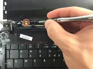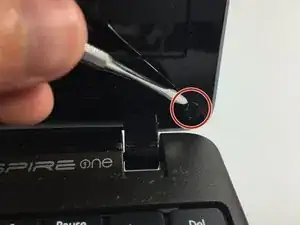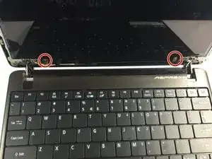 Снимите чёрные резиновые заглушки в нижнем правом и левом углах экрана нетбука.