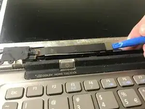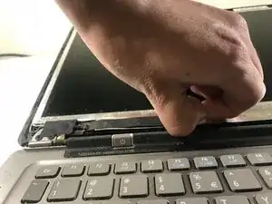 Отклейте серебряную ленту из угла вашего ноутбука, пока она полностью не снимется.