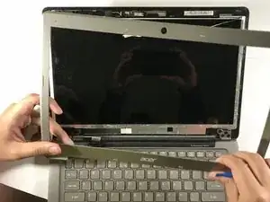 Проводите пластиковым инструментом по всей рамке, пока вся рамка не станет свободной и не снимется.
