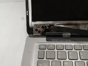 Оттяните экран (всю верхнюю часть) назад, чтобы снять его с петель ноутбука.