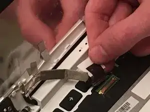 После того как вы удалите винты, отогните кусок ленты, покрывающий разъем дисплея.