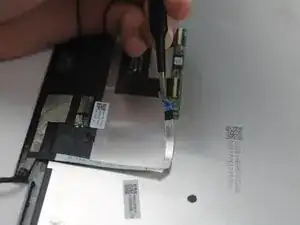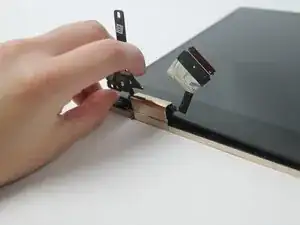 Открутите три винта длиной 4,6 мм, крепящих левый кронштейн экрана к внутренним компонентам, с помощью отвёртки JIS #1.
