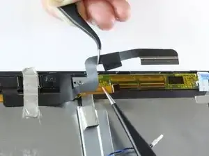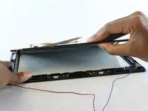 С помощью нейлоновой лопатки аккуратно отожмите ЖК-матрицу от экрана.