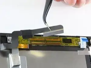 Снимите металлическую ленту, закрывающую соединение клавиатуры.