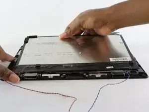 После отделения аккуратно поднимите ЖК-матрицу и отложите её от экрана.