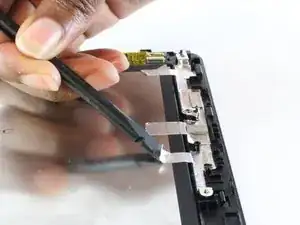 Начиная с угла планшета, используйте пластиковый инструмент для вскрытия, чтобы создать зазор между экраном и задней крышкой.