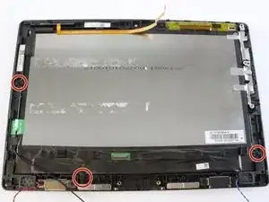 Удалите три винта 3,5 мм с внешнего периметра планшета.