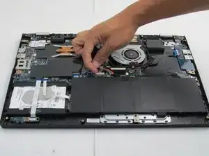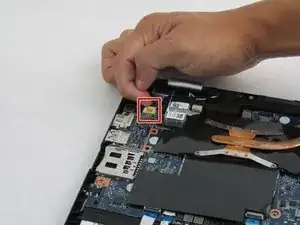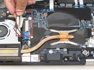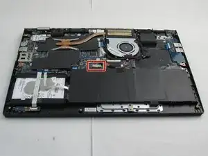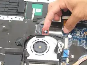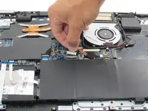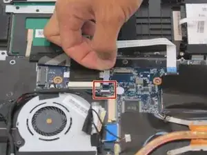 Пальцами или пинцетом аккуратно извлеките кабель аккумулятора из разъёма на материнской плате.