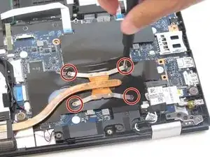 Удалите три винта Phillips #0, крепящие материнскую плату.