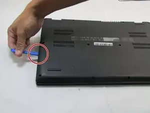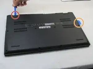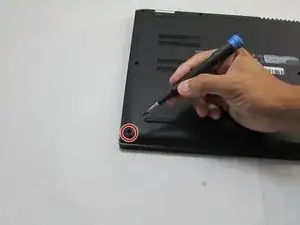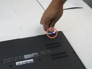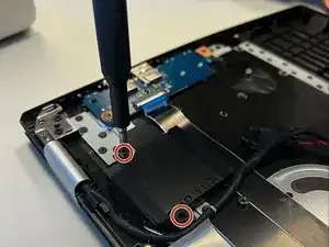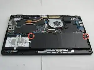 Удалите два винта Phillips #0, фиксирующих аккумулятор внутри корпуса ноутбука.