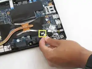 Осторожно выньте разъём питания из его посадочного места в корпусе ноутбука.