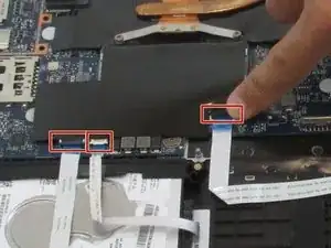 Поднимите три чёрные защёлки, чтобы освободить соединители кабелей.