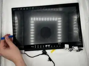 Удалите винты Phillips #0, крепящие экран к сборке дисплея.