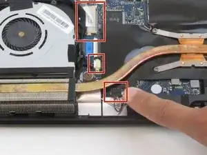 Снимите кабели рядом с вентилятором, аккуратно вытащив их из разъёмов.
