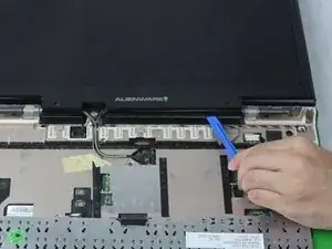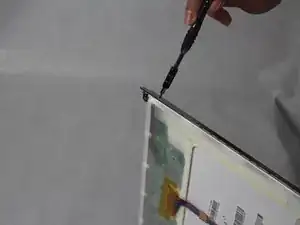 Сверху дисплея используйте пластиковый инструмент, чтобы отделить панель экрана от верхней части ноутбука.