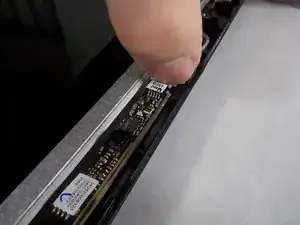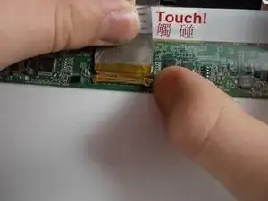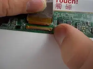 Отлепите ленту, удерживающую кабель экрана в разъеме.