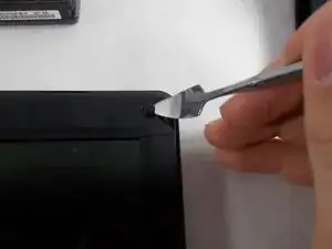Снимите шесть резинок вокруг рамки экрана с помощью лопатки.