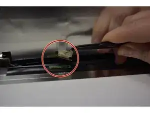 Используя пластиковый инструмент для вскрытия, пройдите по краю Chromebook, отделяя пластиковый корпус по шву.