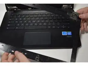 Аккуратно возьмите экран и снимите его с остальной части Chromebook.