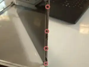 Последний шаг — удалить восемь винтов 3 мм Phillips #0 с боковых скоб самого экрана с помощью отвертки Phillips #0. По четыре винта с каждой стороны.