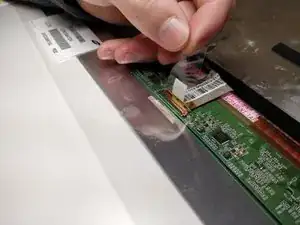 Удалите пластиковую крышку, закрывающую соединения на задней стороне экрана.