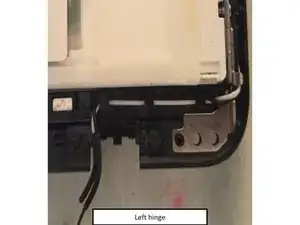 Держа дисплей вертикально, удалите два винта левого шарнира ~5 мм.
