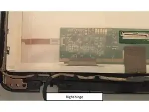 Поддержите дисплей и удалите четыре винта правого шарнира ~5 мм.