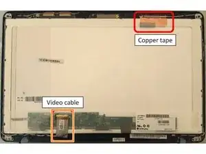 Отклейте и выдвиньте видеокабель из задней части экрана.