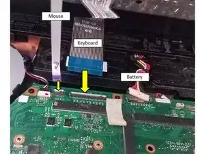 Освободите кабель клавиатуры от разъёма на материнской плате. (ZIF)