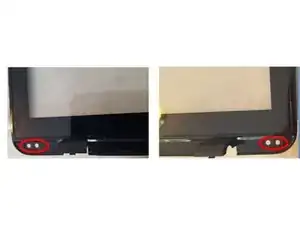 Снимите левые и правые заглушки винтов и винты ~4 мм внизу сборки экрана, расположенные возле углов.
