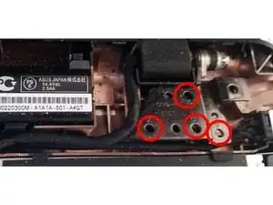 Удалите два винта ~5 мм, удерживающих модуль кнопки питания.