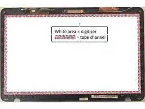 Будьте предельно осторожны, чтобы не касаться прозрачного стекла дигитайзера руками или клеевого слоя ленты.