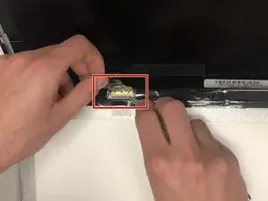 Оттяните золотистый ленточный кабель, чтобы отсоединить экран от ноутбука.