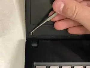 Снимите два чёрных пластиковых кружка со стекла экрана с помощью пластиковой лопатки.