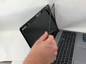 Используя металлическую лопатку, подденьте края рамки экрана снаружи.