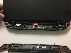 Переверните ноутбук и удалите винты, как показано на изображении.