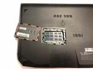 Снимите крышку оперативной памяти, подняв крышку винта и сильно потянув наружу.