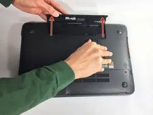 Используйте пластиковый инструмент для открытия, чтобы удалить пластиковые крышки петель с каждой стороны ноутбука.