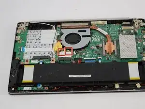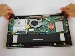 Отсоедините два кабеля, подключённых к плате Wi-Fi.