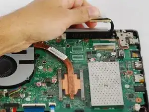 Используя отвёртку Phillips #1, выкрутите четыре винта длиной 4 мм, которые крепят держатель экрана к материнской плате.