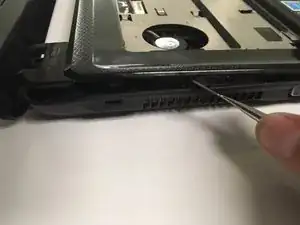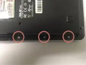 Используйте отвертку Phillips №0, чтобы удалить два винта на задней панели ноутбука.