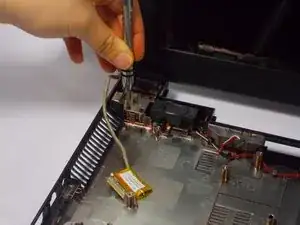 Оттолкните защёлку от клавиатуры кончиком лопатки.